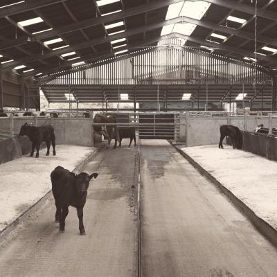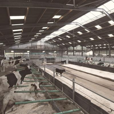 The shed roof is pretty high and reaches 16ft to the eaves and up to 24ft at the line of central ventilated roof lights which have had an amazing impact for natural light. This gives a lovely light and airy building that produces a pleasant atmosphere for the cows and calves. They were expensive but we wanted to get the building right from the start.