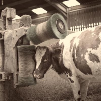 One of the most important things in the dairy shed, from the cows' point of view, are the motorised brushes. They love them and they're an important part of making sure that cows can express natural behaviour.