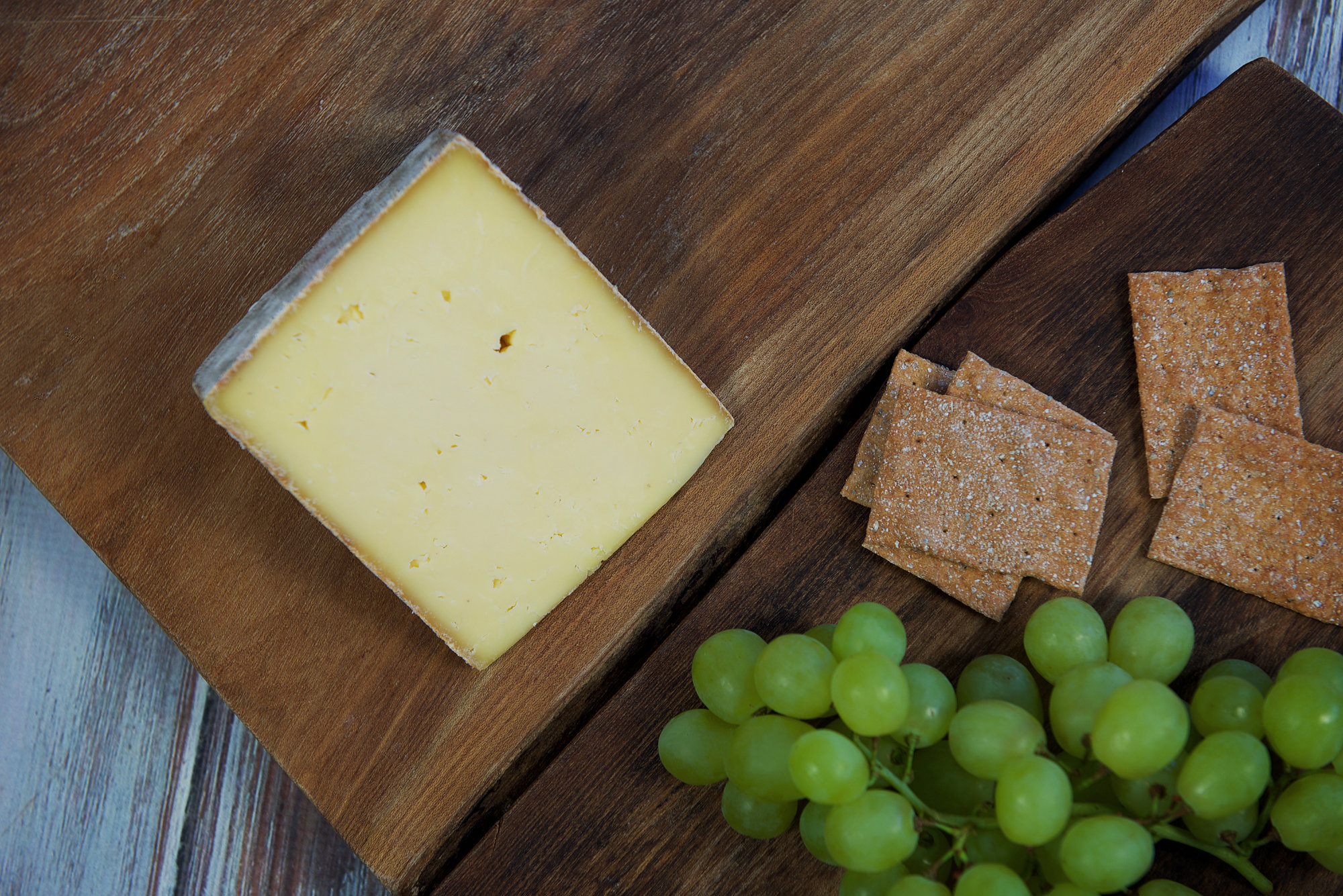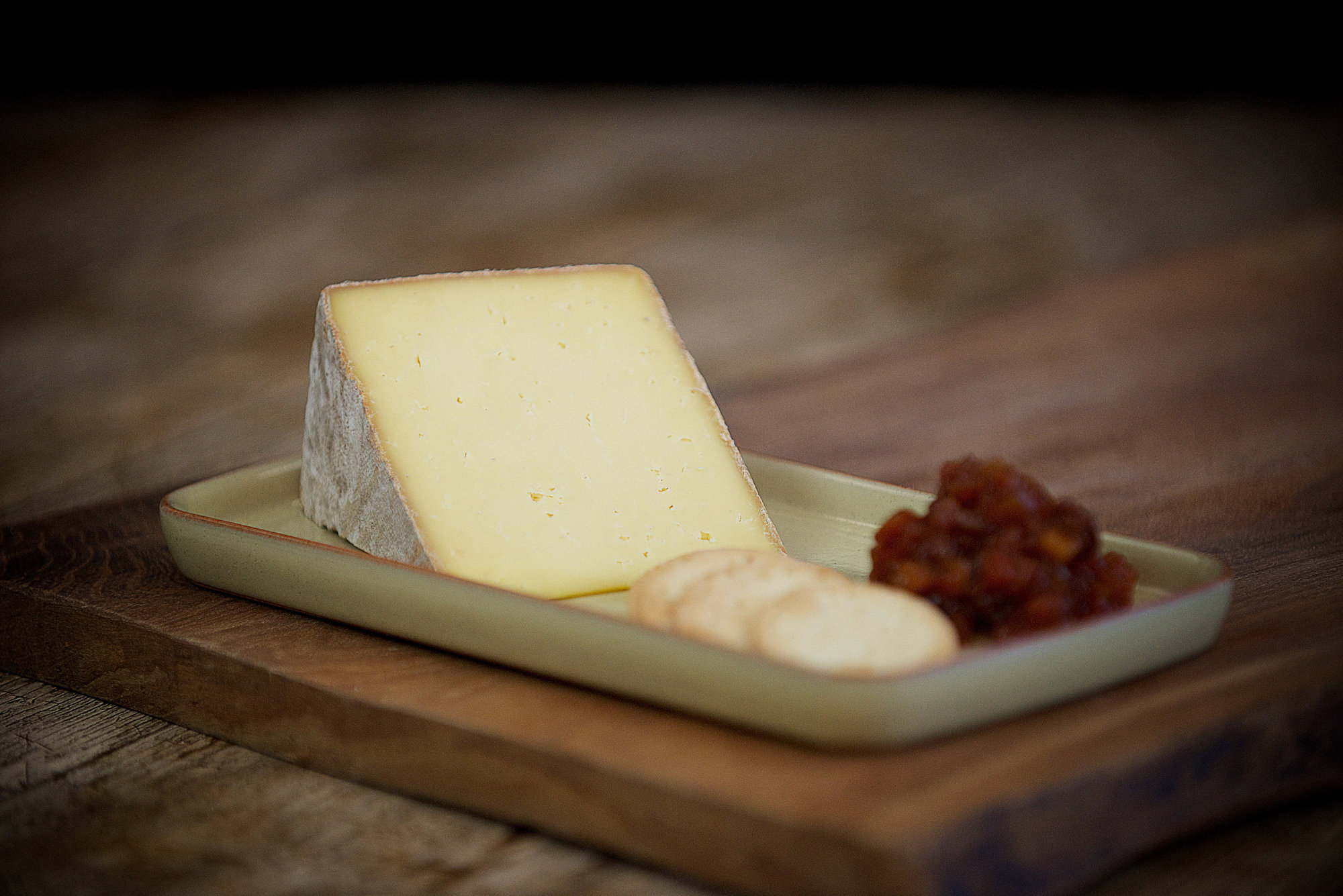 This cheese is handmade using vegetarian rennet and raw, organic milk from our cow with calf dairy farm, and is ripened for 2-6 months.