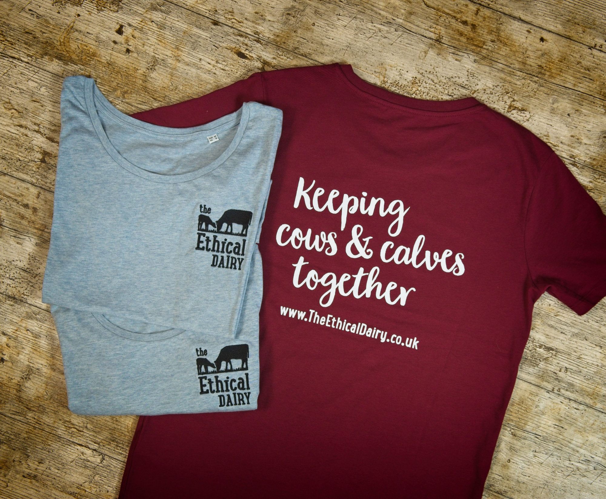 Made from 100% organic cotton which makes these t-shirts lovely and soft, they are printed with our The Ethical Dairy logo on the front and the text ‘keeping cows and calves together’ on the reverse.